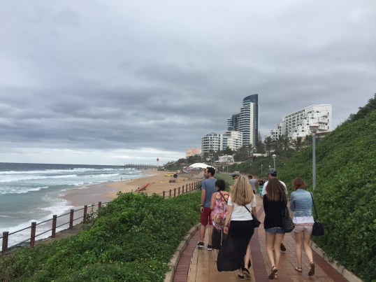 Here’s us walking to lunch and some downtown Durban action.