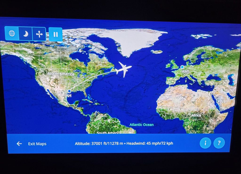 The young woman and I had a delightful talk while at the bar. She told me about her trip to South America. She shared some photos and videos of her trip. We got along quite well. When it was time to leave, she and I left the bar and walked and talked our way onto the plane. Then, we departed Houston and began the flight across the world to Amsterdam.
