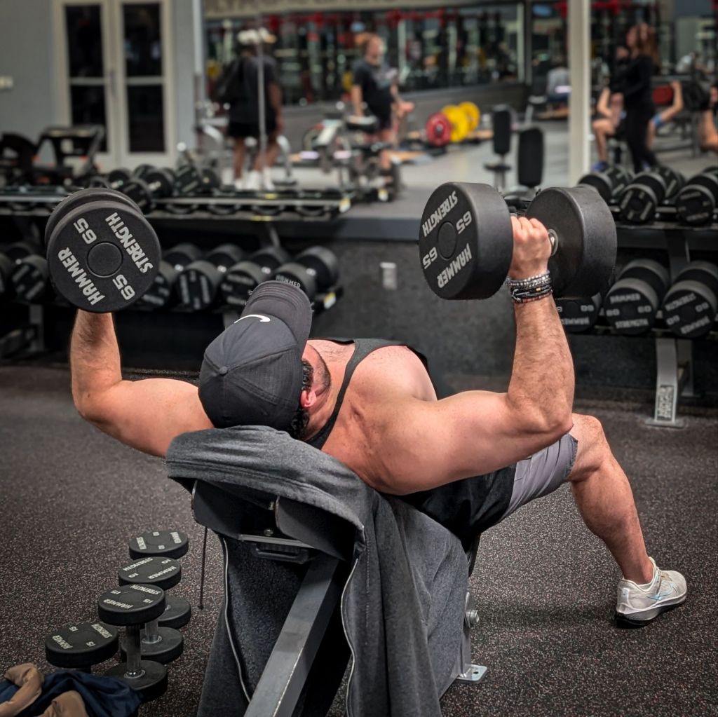 1. Incline Dumbbell Bench Press (3 sets x 15 reps)
