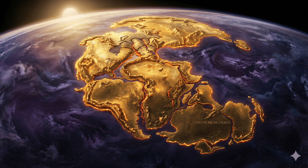 The dialogue begins with the ground beneath our feet. Modern geology tells us that roughly 300 million years ago, the Earth’s landmasses were fused into a single supercontinent, Pangea, surrounded by a global super-ocean, Panthalassa. This massive island of order eventually rifted apart, drifting over eons to form the fragmented world we inhabit today.
