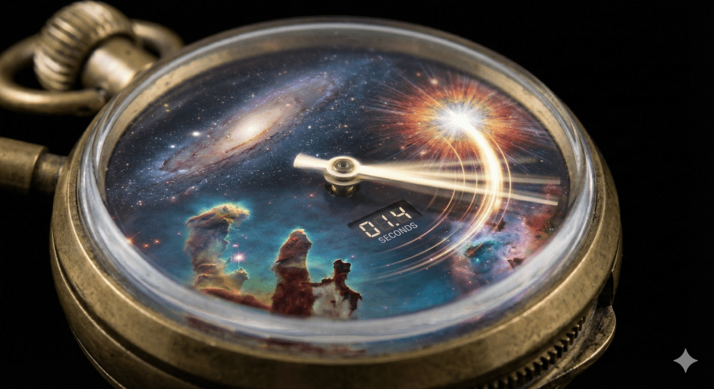 However, this conflict may be a matter of perspective rather than fact. When we strip away the dogma of both religious literalism and scientific materialism, a startling convergence begins to emerge. If we accept the scientific reality of a universe born in a “Big Bang” and the theological premise of a God who exists outside of time, the contradictions dissolve. We are left with a unified theory of existence: a universe that is both billions of years old and, to its Observer, a singular, 1.4-second flash of artistic expression.