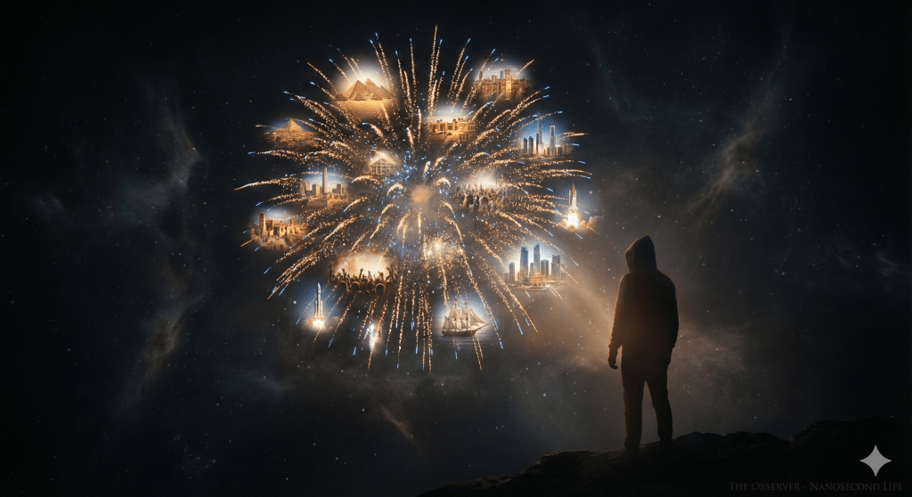 This leads to a “Hyper-Speed Theology” where God is not the Director calling out cues, but the Audience witnessing a completed work. It reframes the human experience: we are not puppets on a string, but the energy generated by the reaction. Our lives, lasting a mere fraction of a divine nanosecond, are fleeting sparks. This perspective risks nihilism—how can a nanosecond life matter?—but it actually elevates the human condition. If the Observer is focusing on the flash, then the quality of the light matters. We are not “subjects” to be ruled; we are the signal being transmitted.